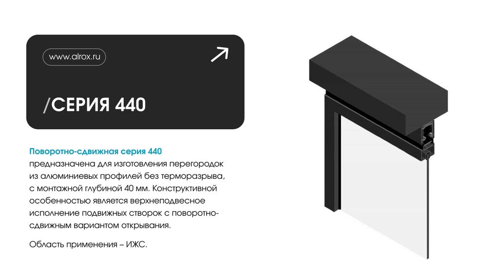 Приглашаем вас ознакомиться с системой АЛРОКС. СЕРИЯ 440. ПОВОРОТНО-СДВИЖНАЯ СИСТЕМА.